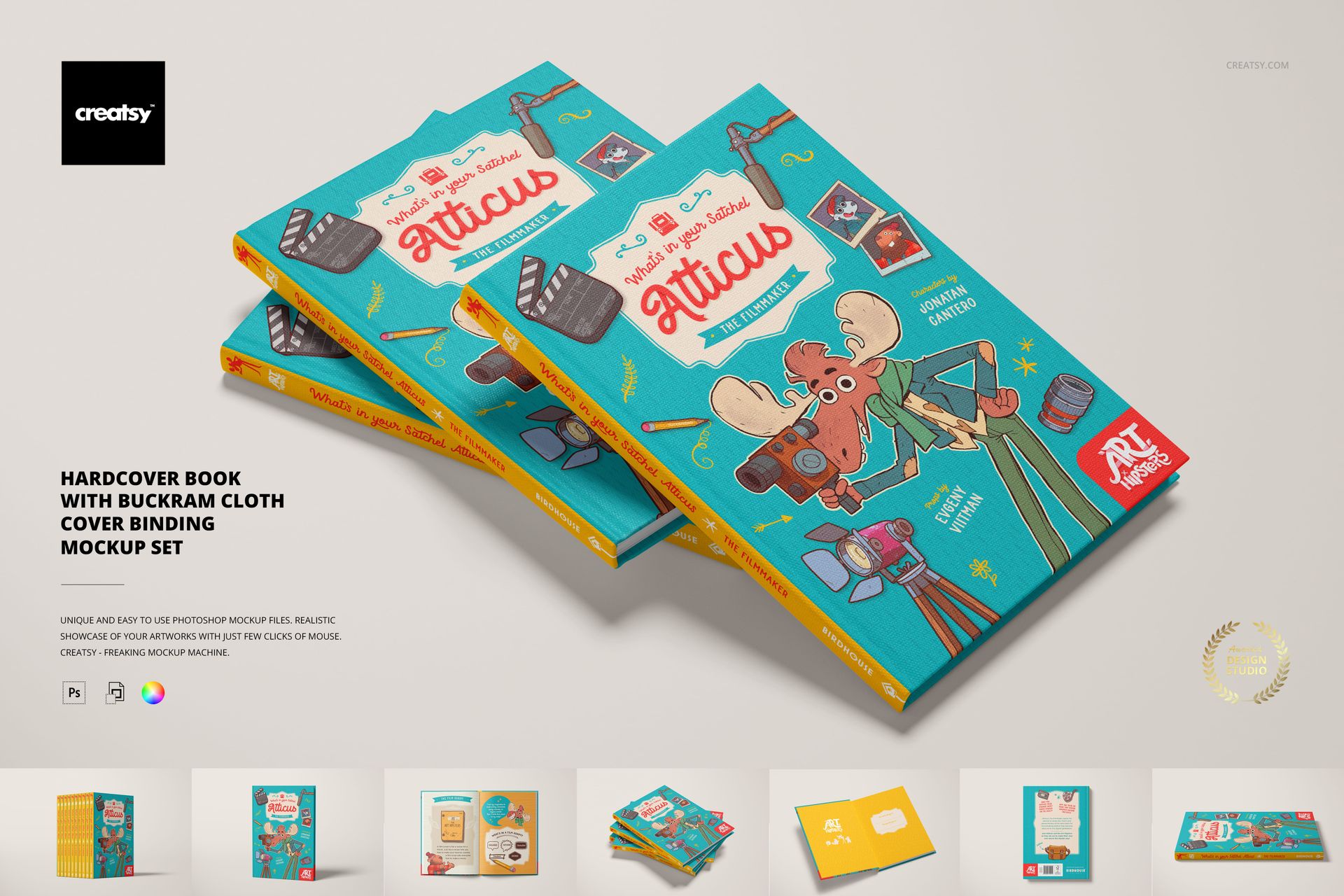 Hardcover Book with Buckram Cloth Cover Binding Mockup Set