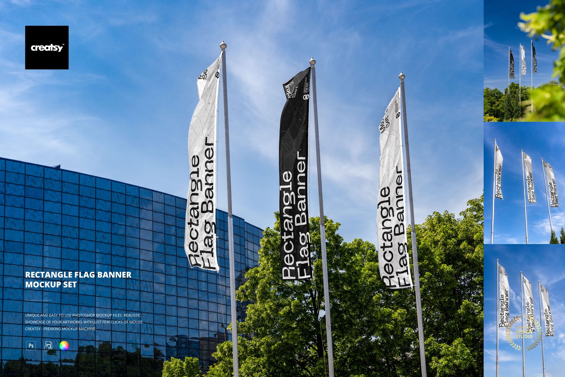 Rectangle Flag Banner Mockup Set