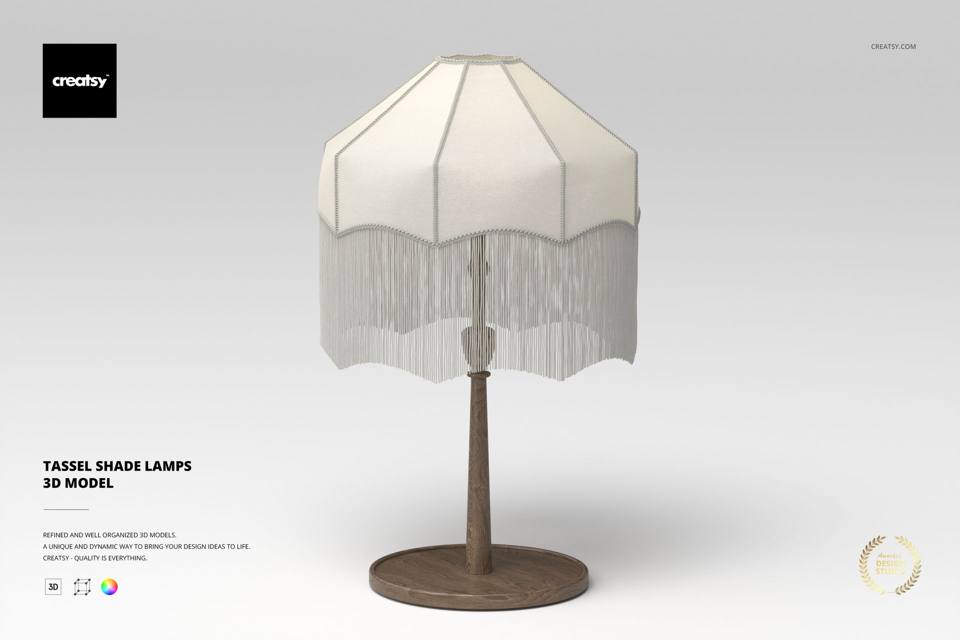 3D model of a tassel shade lamp with a polygonal mesh structure, shown from a front angle on a plain background.