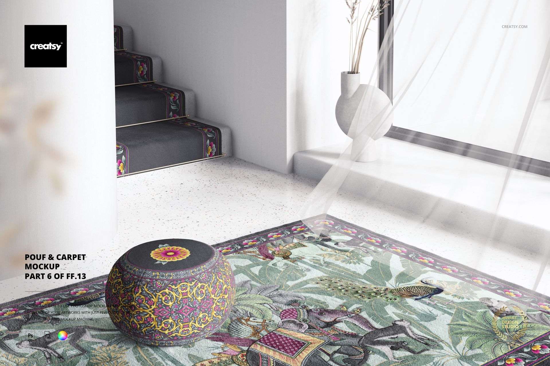 Check out this Pouf and Carpet Mockup (6FFv.13) by Creatsy! Mockup files are a must-have tool for every designer, artist, and illustrator who wants to share their artwork realistically. This mockup is perfect for showing your designs! This mockup is guaranteed to impress while showing off your custom illustration and pattern designs. Creatsy provides high-quality pictures warped into incredible mockups for every occasion. Every file gives you sharp, clear images to work with. You can change the color and design and set a custom color or design for the background. Included with the Pouf and Carpet Mockup (6FFv.13) are JPEG preview images for your convenience.