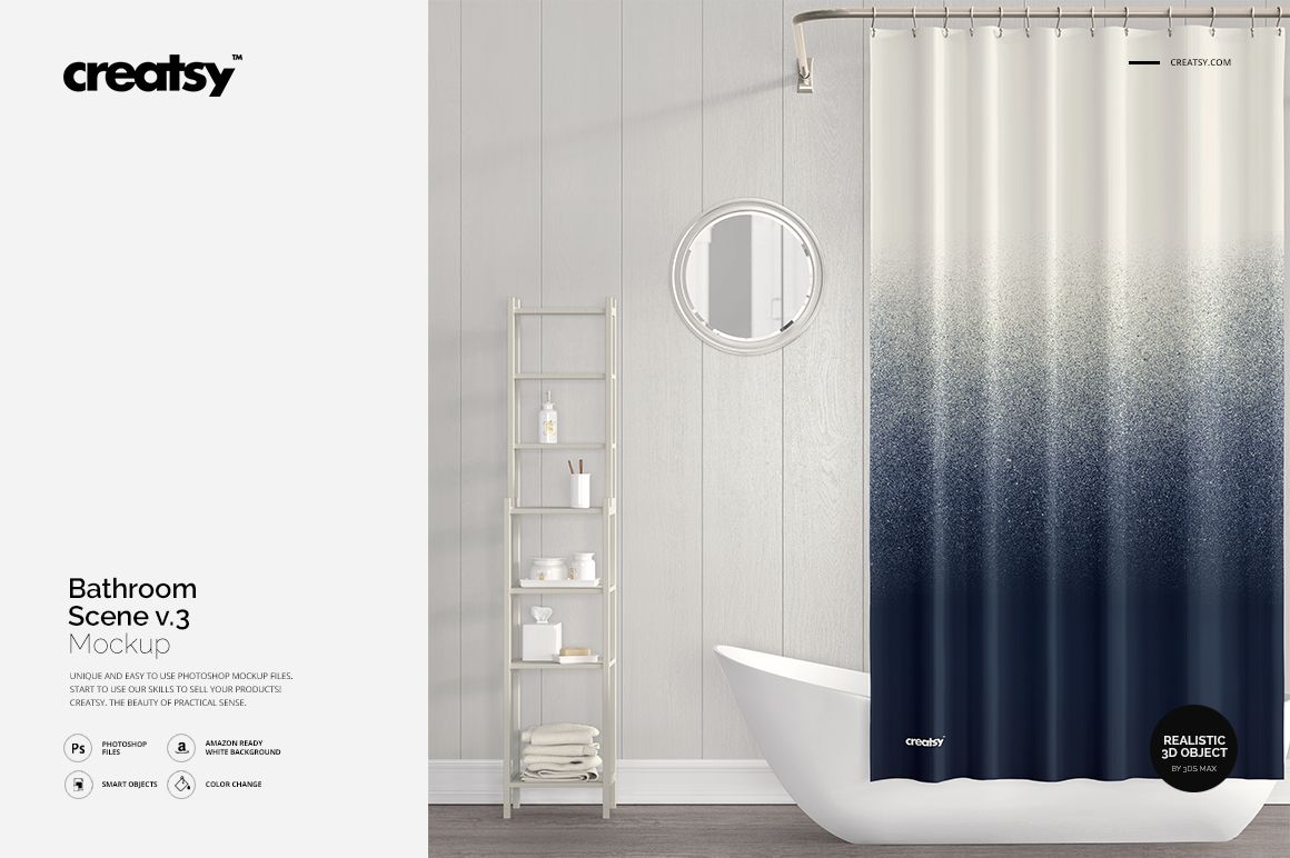 Bathroom Scene Mockup v.3 is a set of layered, editable Adobe Photoshop mockup files. These mockups have been prepared with you in mind, making it easy to showcase your custom design by editing smart objects and color layers. Mockups allow you to showcase your design as if it’s an already-made product. Presenting your designs professionally using mockups gives you a competitive edge over your market rivals.