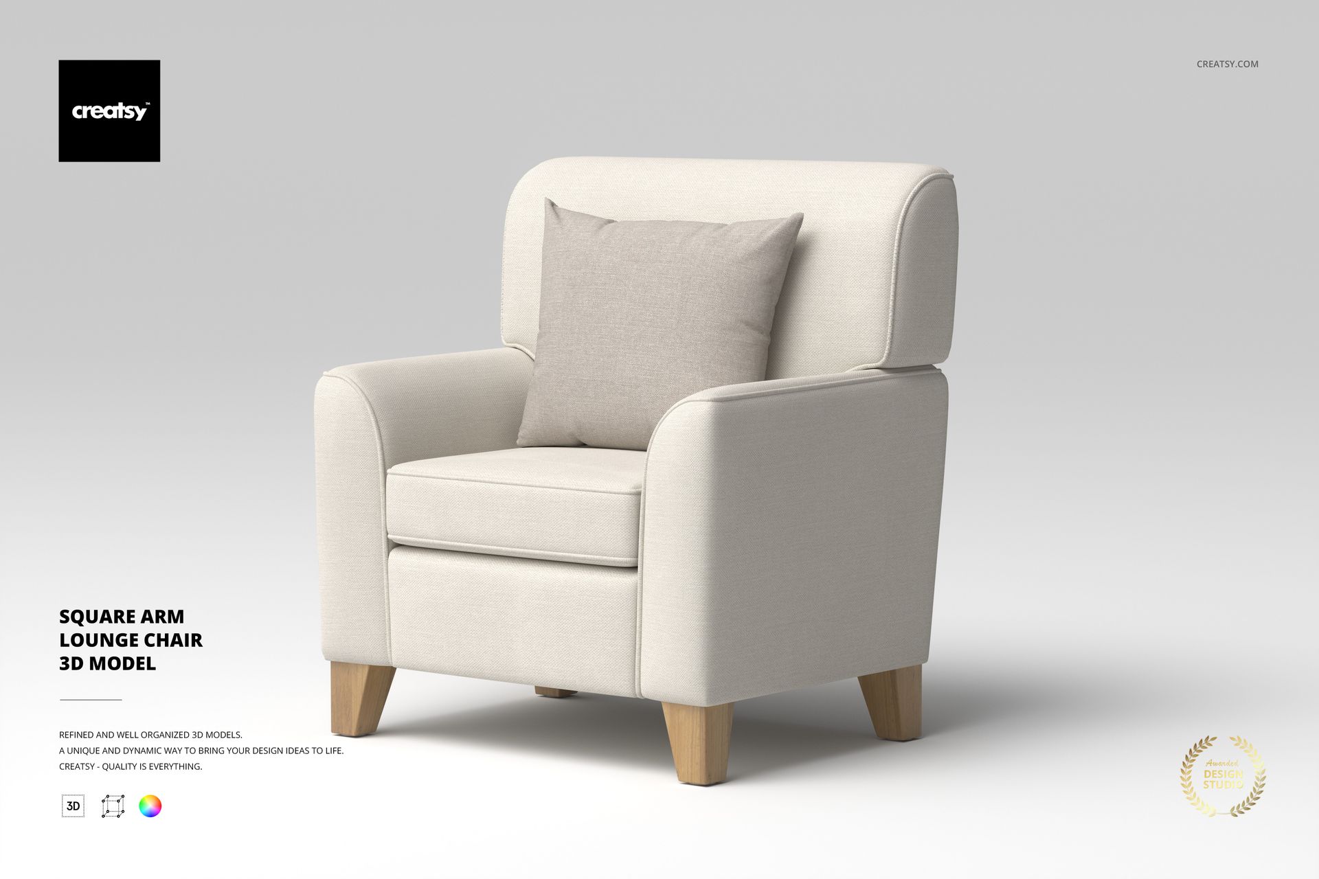 3d render model 3d model square arm lounge chair