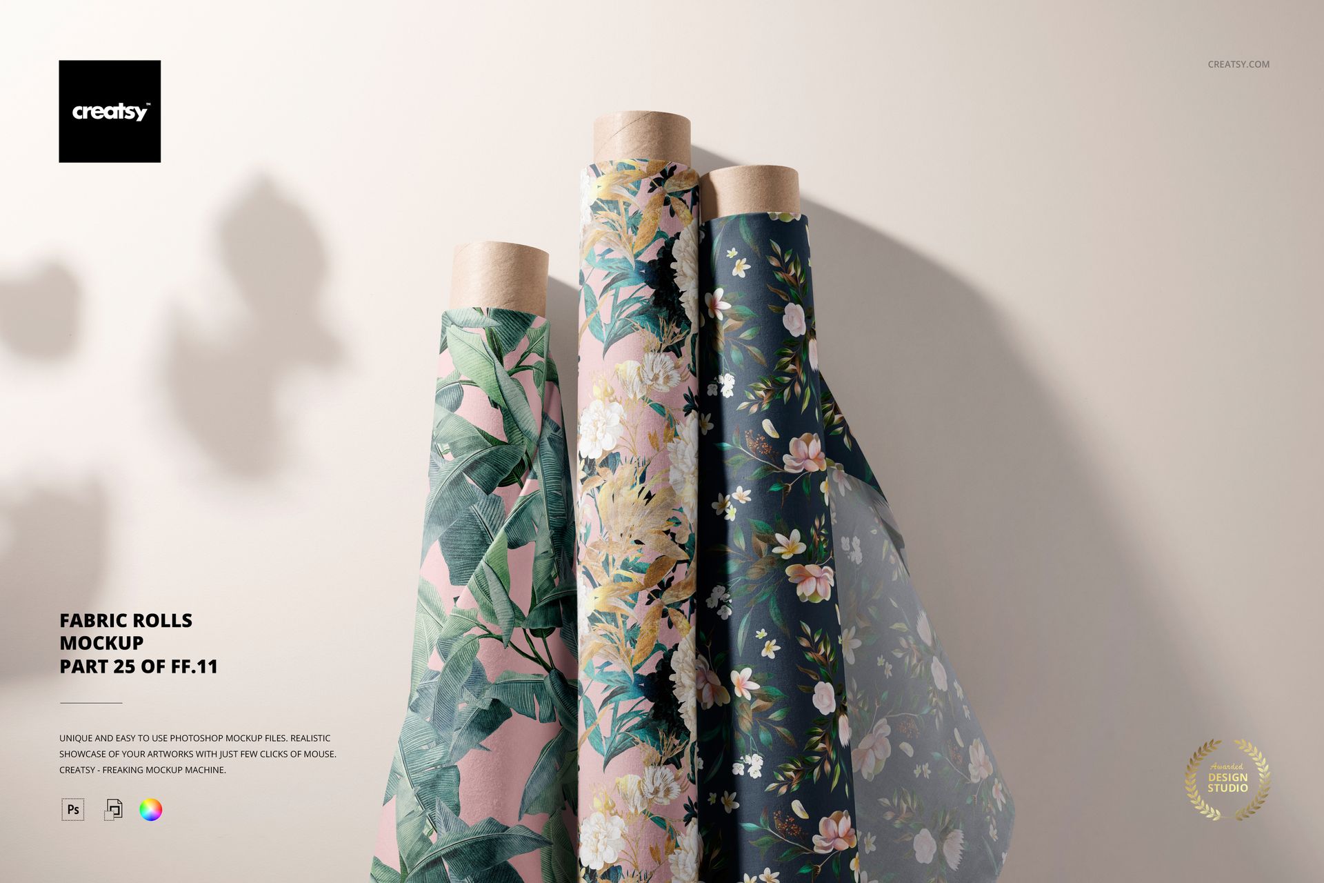 Creatsy provides first-rate mockup files. Displaying your artwork in a realistic setting can expand your current customer base and your profit. Well-organized mockup files are a must-have for every designer, artist, or illustrator to present their artwork and products in an attention-grabbing way. Fabric Rolls Mockup (25FFv.11) is a perfect mockup for your designs. Build your portfolio and improve your online presence using only the best—Creatsy mockups.