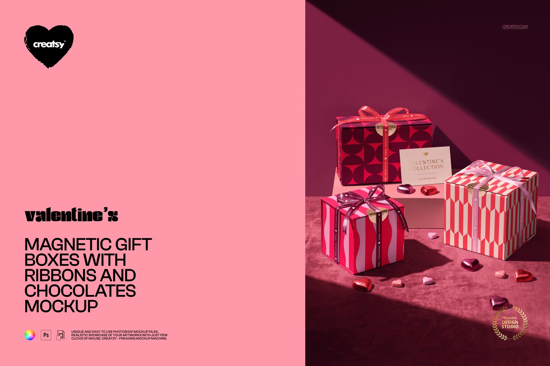 Magnetic Gift Boxes with Ribbons and Chocolates Mockup