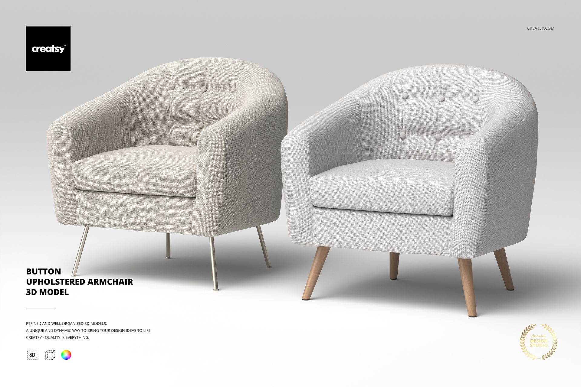 3d render model 3d model button upholstered armchair
