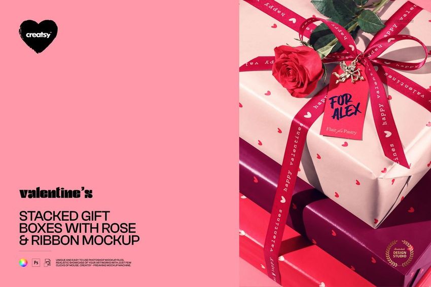 Stacked Gift Boxes with Rose & Ribbon Mockup