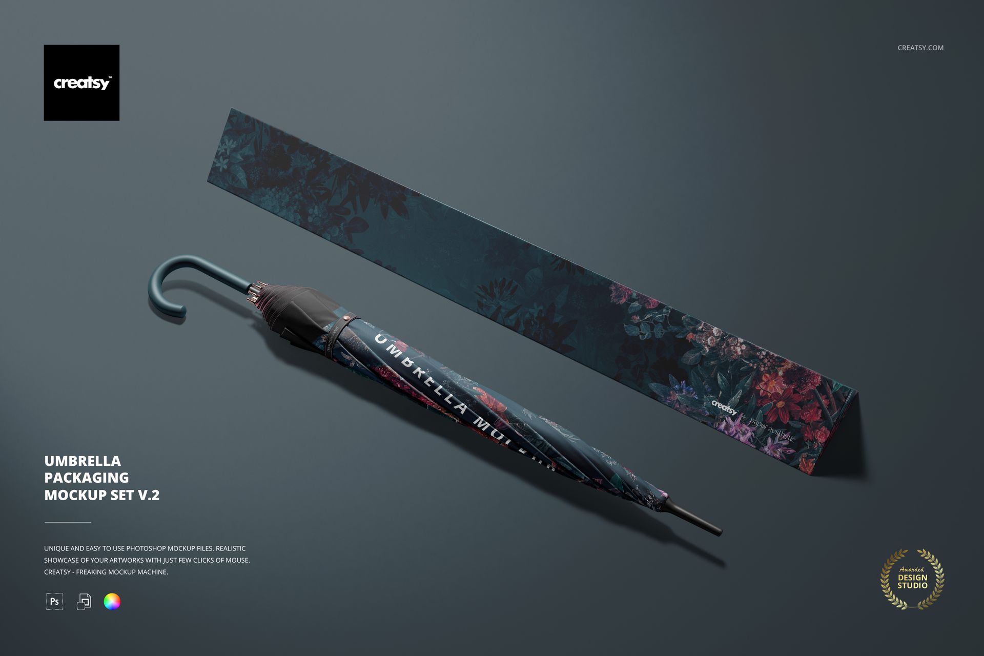 Umbrella Packaging Mockup Set v.2 is a mockup set with editable Adobe Photoshop layers that uses smart objects, color layers, and shadows to portray your designs on actual products. Showcasing your design has never been easier, giving you a competitive advantage in the marketplace.