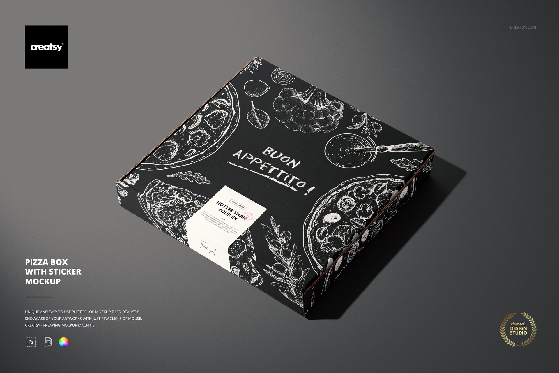 Unleash your creativity with the Pizza Box with Sticker Mockup Set's versatility. Whether you want to apply solid colors, gradients, or custom designs, this mockup empowers you to tailor it to your specifications. Step-by-step instructions accompany this extraordinary tool, making mocking up your designs a breeze, even if you're new to Adobe Photoshop or working with mockup templates.