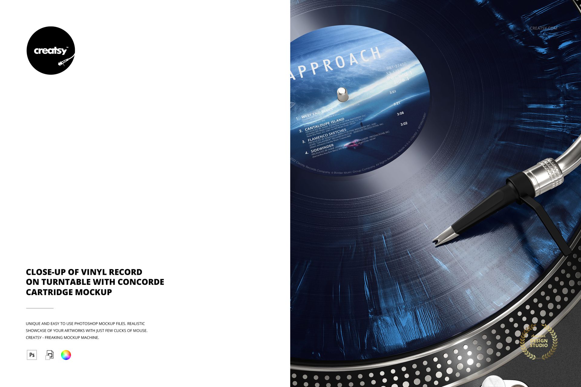 Close-up of Vinyl Record on Turntable with Concorde Cartridge Mockup