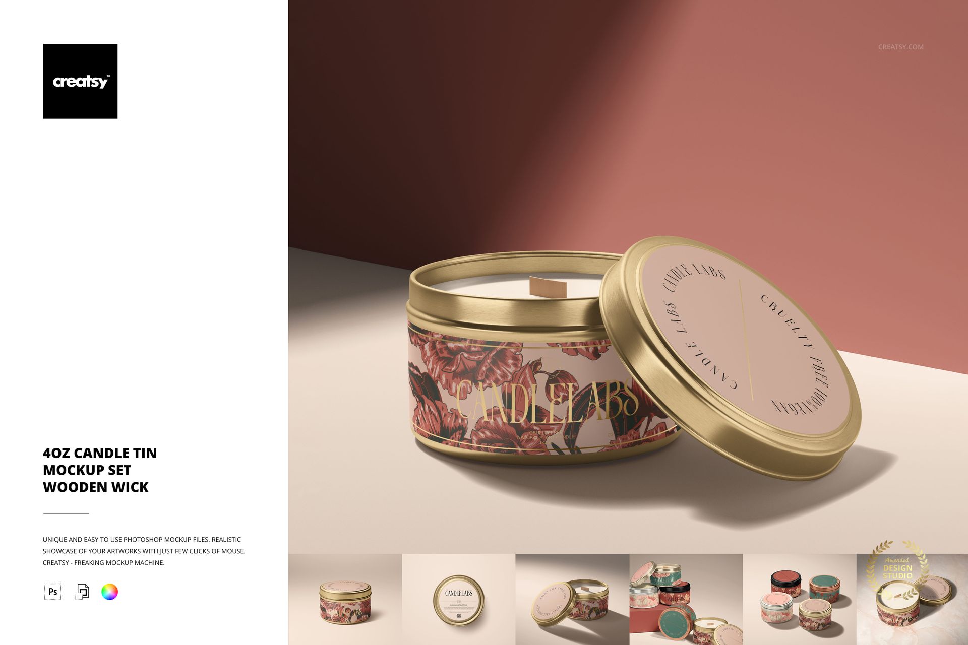 4 oz Candle Tin Mockup Set – Wooden Wick