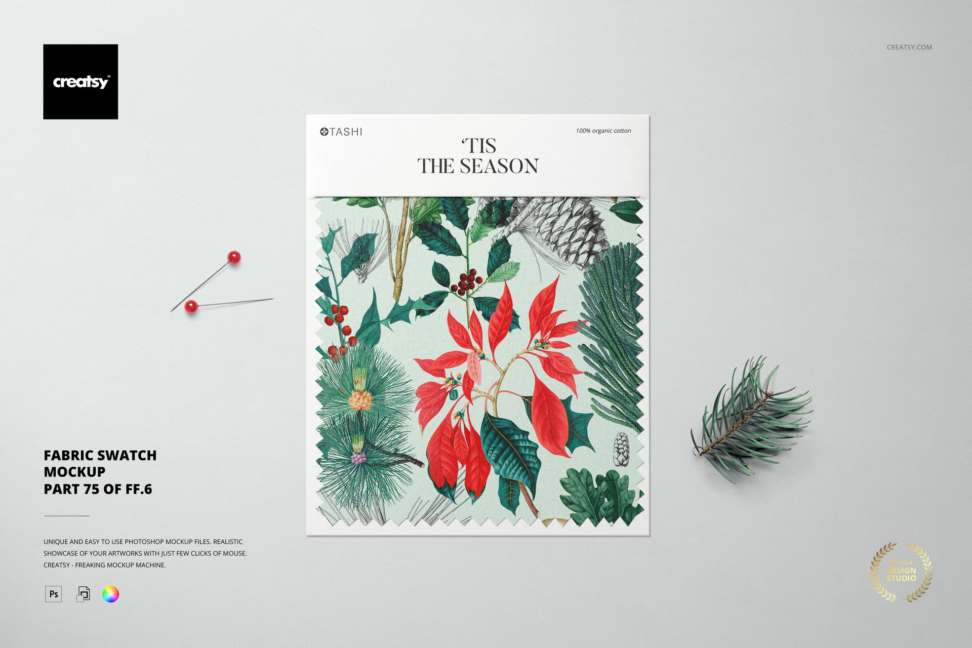 Fabric Swatches Mockup (75FFv.6) by Creatsy provides a lovely fabric swatch ready for you to style with your artwork. A must-have item, this fabric mockup is necessary for every designer, especially surface pattern designers and illustrators. The well-organized Adobe Photoshop files of the fabric mockup offer you color layers and perfectly warped smart objects to completely customize every part of the fabric swatch mockup set. This mockup set comes with multiple unique presentation options—all while integrating your design with the flawlessly retained texture of the material. Get ready to wow your clients with your designs on this Fabric Swatches Mockup (75FFv.6), sure to impress!
