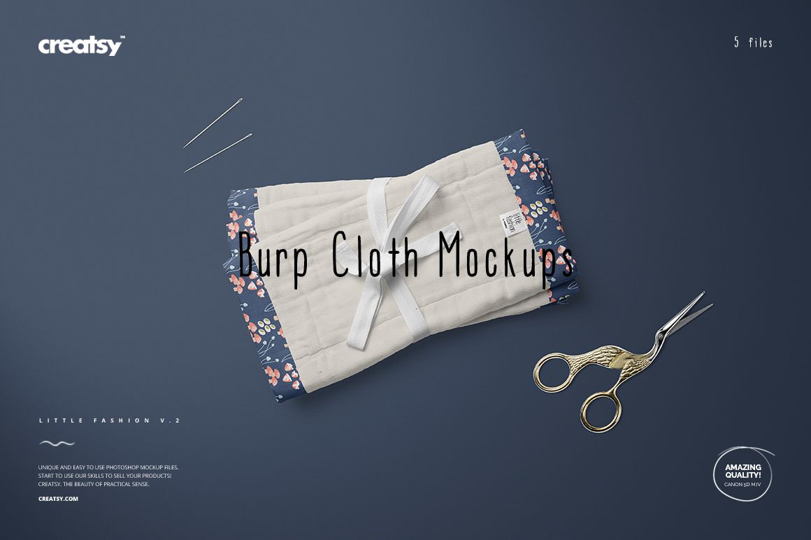 Burp Cloth Mockup Set (02LFv.1) is a mockup set with layered, editable Adobe Photoshop files prepared from high-resolution images. Color layers and smart objects allow you to showcase your custom design with maximum editability. With the help of mockup files, presenting your designs professionally will give you an edge over your competitors.