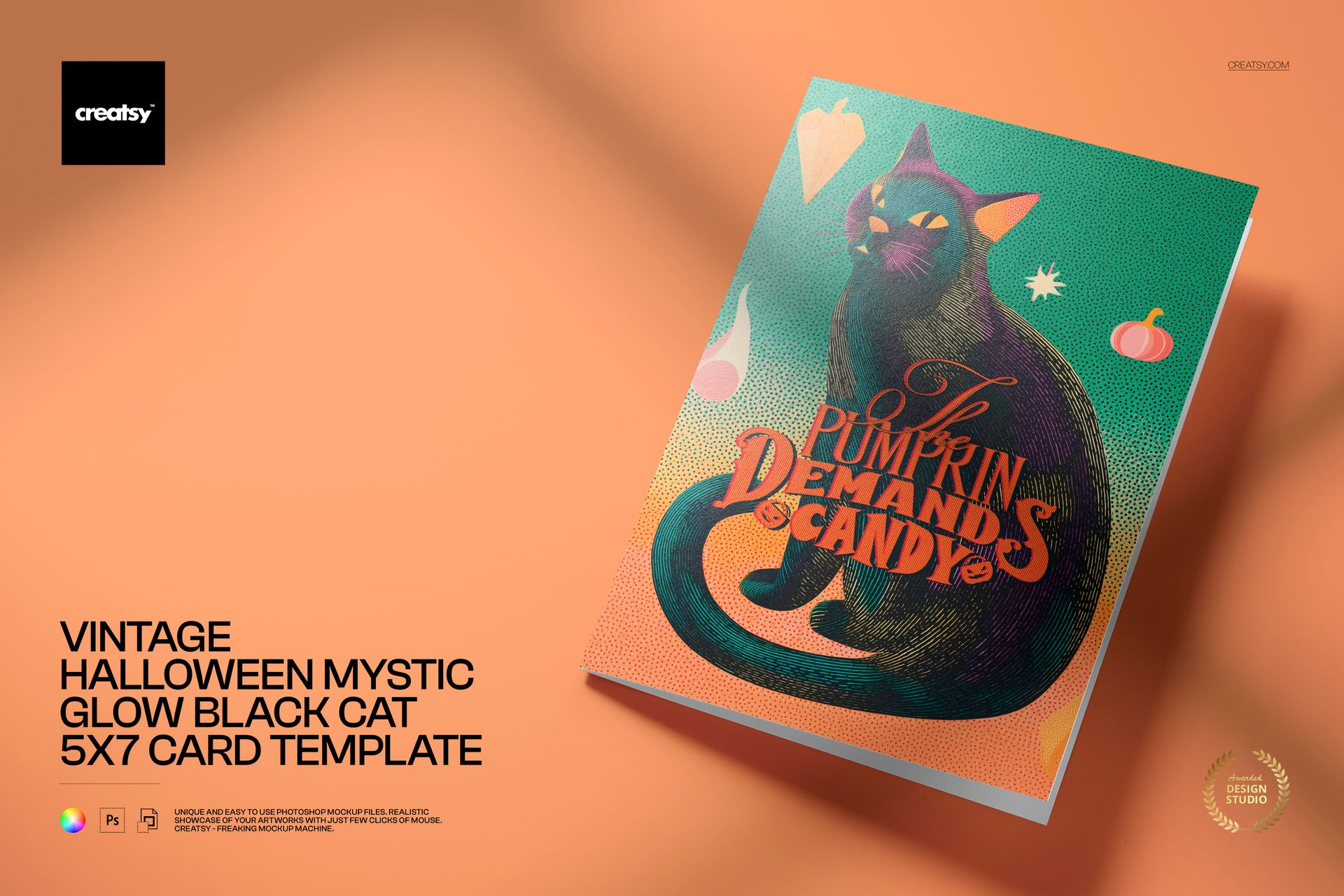 Vintage Halloween Mystic Glow Black Cat 5x7 Card Template