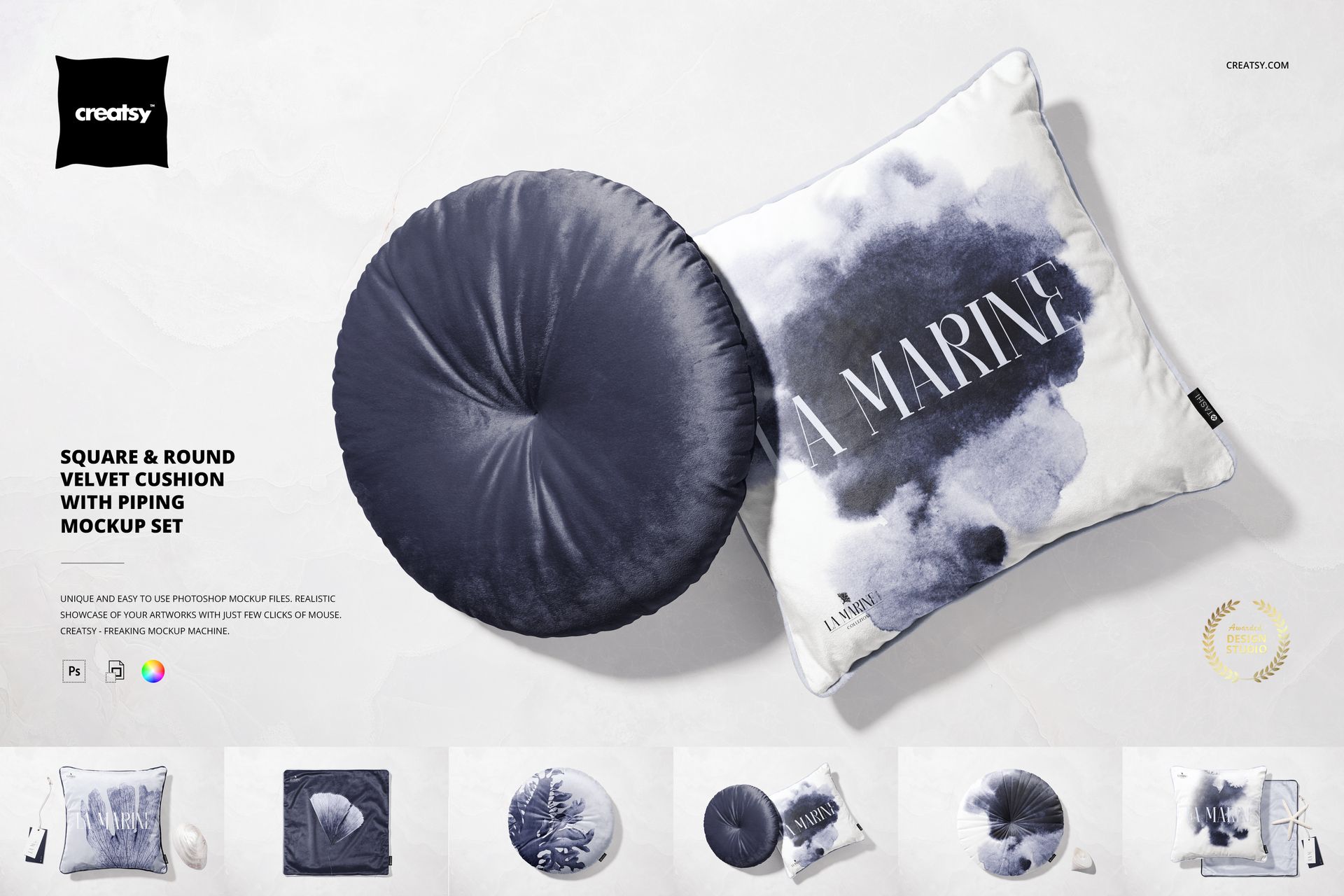 What is the Square & Round Velvet Cushion with Piping Mockup Set?