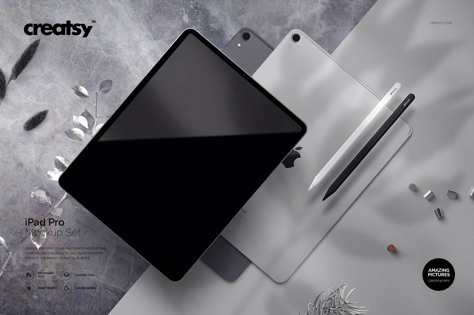 iPad Pro Mockup Set is an Adobe Photoshop file set for you to showcase your designs using smart objects and color layers. Editable PSD layers enable you to showcase your designs in a realistic setting. When you display your designs in a mockup, achieving a competitive edge is easy.