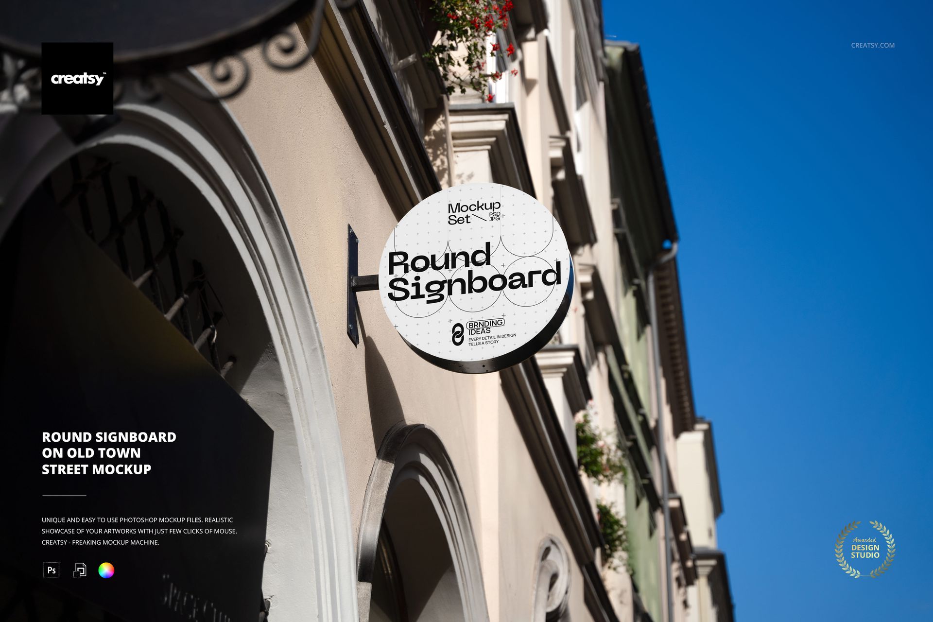 Round Signboard On Old Town Street Mockup