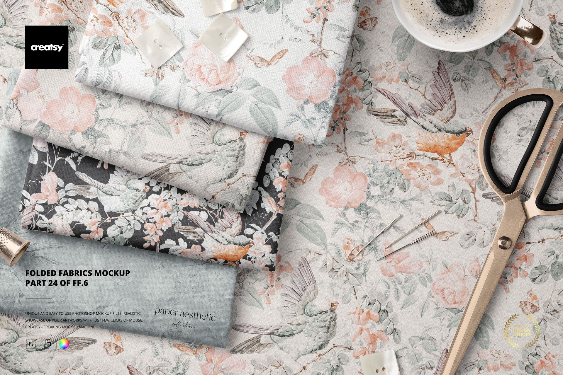 Folded Fabrics Mockup (24/FFv.6) template by Creatsy provides various fabric angles to which you can apply a custom design or color. This fabric mockup is a gorgeous way to show off your creations. Color layers and smart objects are competently arranged in this textile mockup, giving you total control over how you customize the background and fabric using solid colors, gradients, and custom designs. A versatile mockup for any situation, the Folded Fabrics Mockup (24/FFv.6) set is a sensible way to share the functionality of your artwork. Every Adobe Photoshop mockup file contains well-organized layers with easy-to-use features, allowing you to customize the fabric mockup to your satisfaction. Color layers and smart objects make your designs pop in the background. Adding textures, hiding objects, concealing drop-shadows, and saving the files with transparency make this textile mockup a handy way to show off your designs!