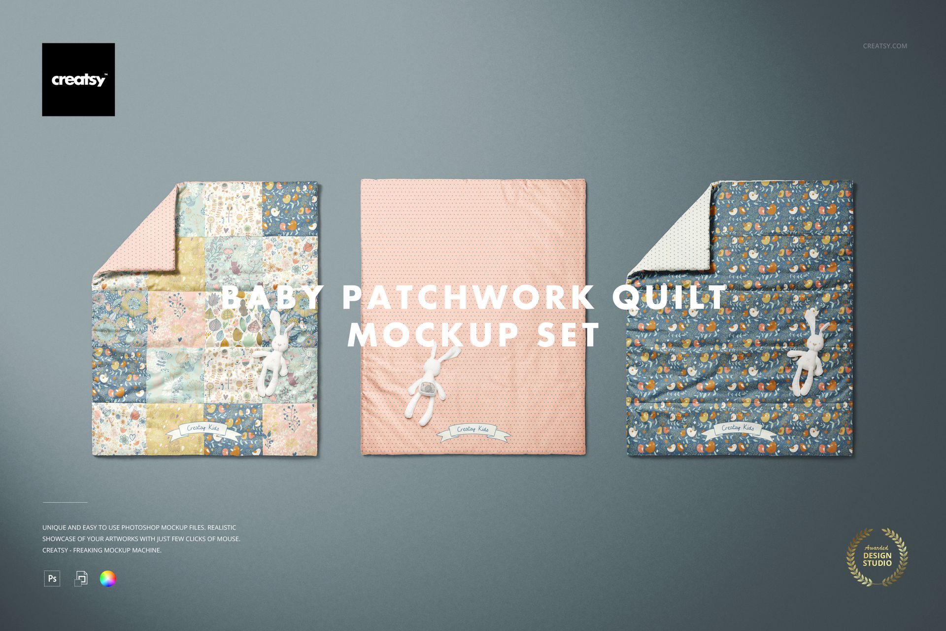 Baby Patchwork Quilt Mockup Set is a set of layered, editable files prepared in Adobe Photoshop from high-resolution photos. Mockups allow you to custom-design a scene or a product by editing smart objects and color layers. With the help of Creatsy mockup files, you’ll showcase your design professionally in an attractive way, gaining a competitive edge over your market rivals.