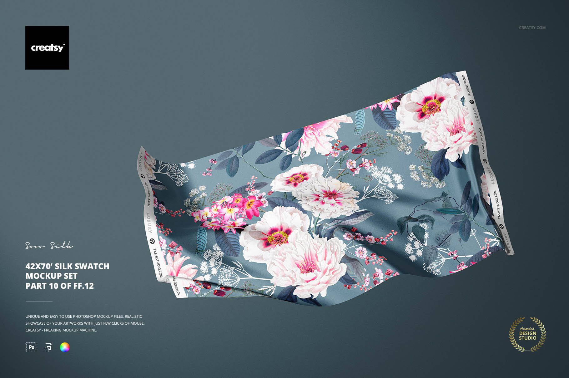42x70’ Silk Swatch Mockup Set Mockup Set by Creatsy provides you with a lovely fabric swatch ready for you to style with your artwork. A must-have item, this fabric mockup is necessary for every designer, especially surface pattern designers and illustrators. The well-organized Adobe Photoshop files of the fabric mockup offer you color layers and perfectly warped smart objects to completely customize every part of the fabric swatch mockup set. This mockup set comes with multiple unique presentation options—all while integrating your design with the flawlessly retained texture of the material. Get ready to wow your clients with your designs on this 42x70’ Silk Swatch Mockup Set mockup set that is sure to impress!