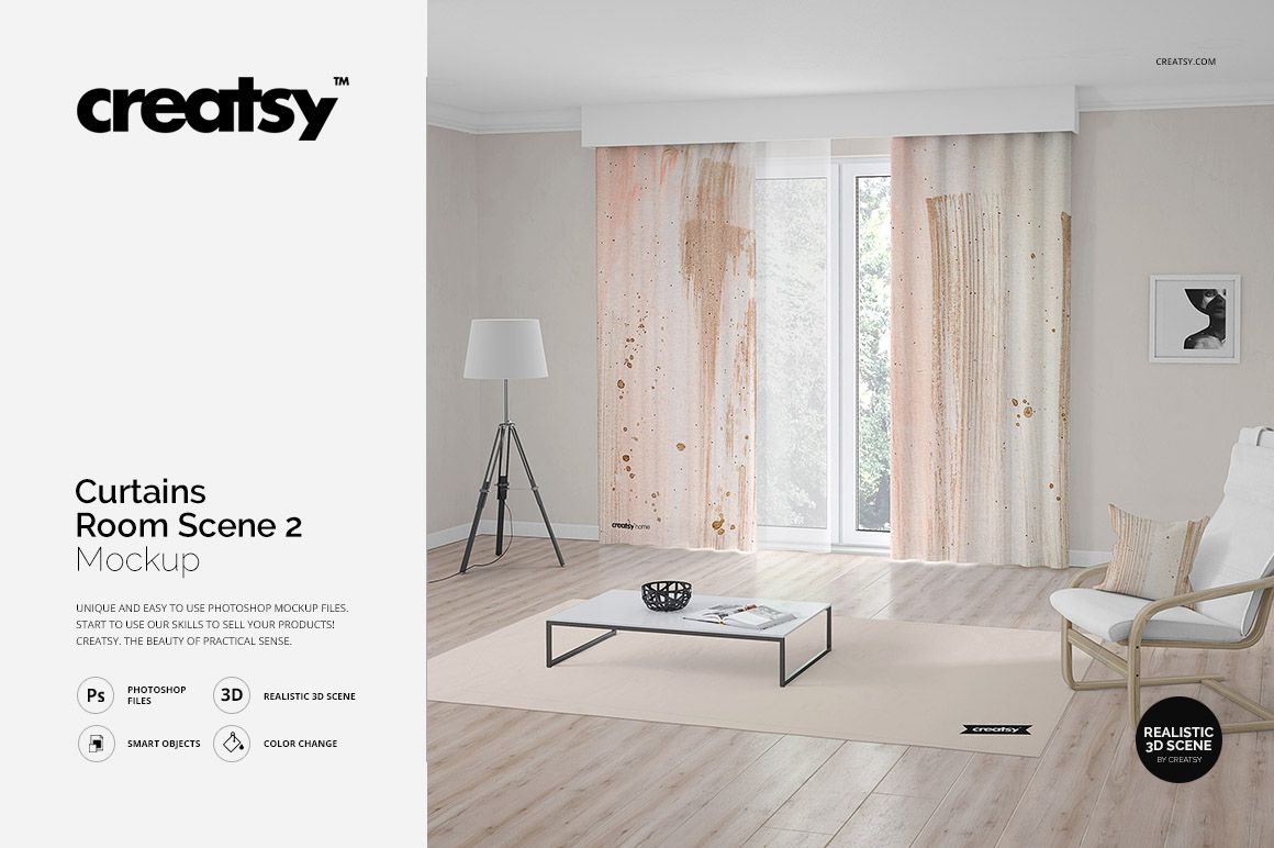 Another amazing Creatsy mockup. I only kind of wish it provided different types of curtains, like the type that lets the rod go through a pocket. Either way, love this mockup.