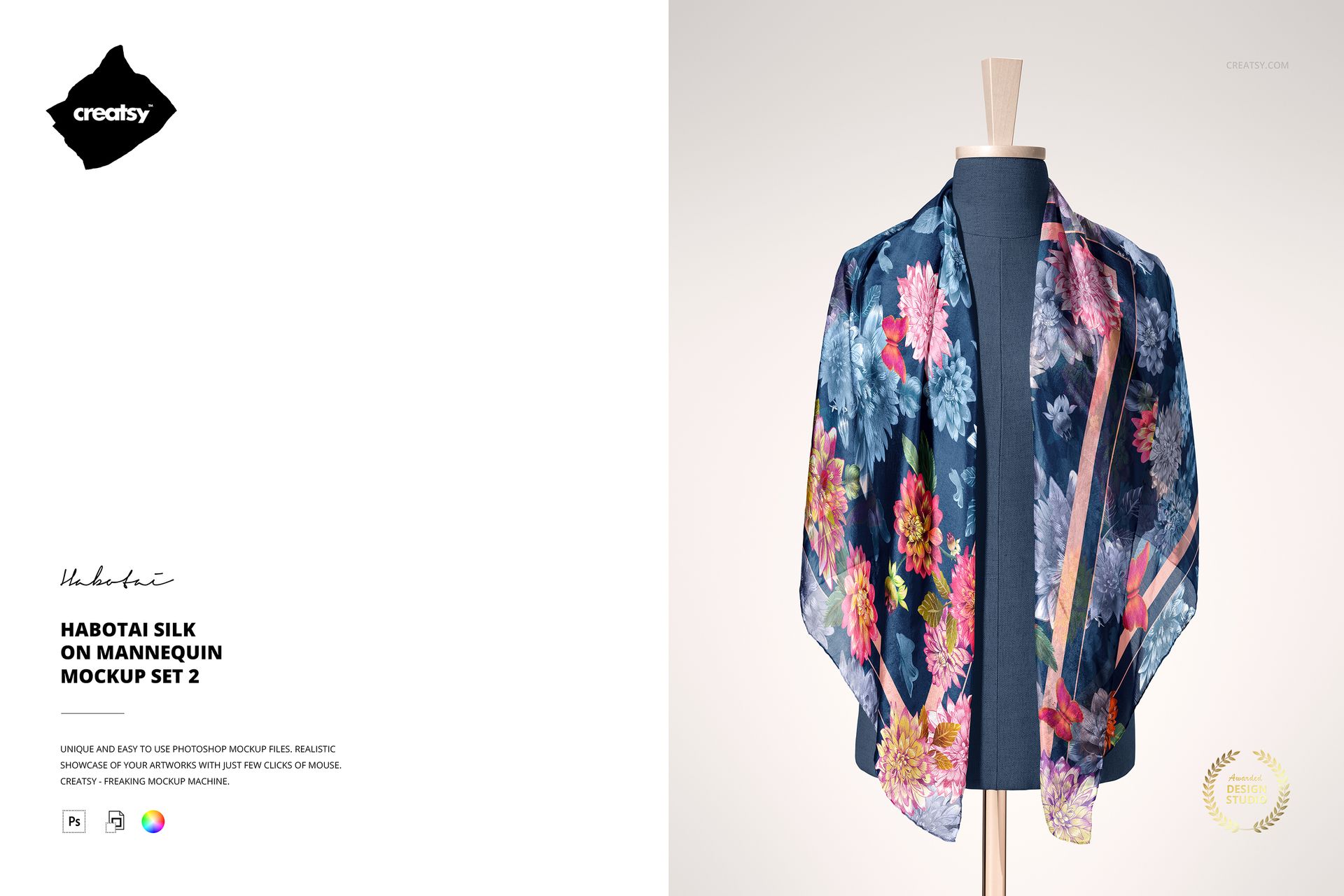 Introducing Creatsy's exquisite Habotai Silk Scarf on Mannequin Mockup Set 2 - a versatile tool for fashion designers, entrepreneurs and creatives who want to showcase their silk scarf designs in style.