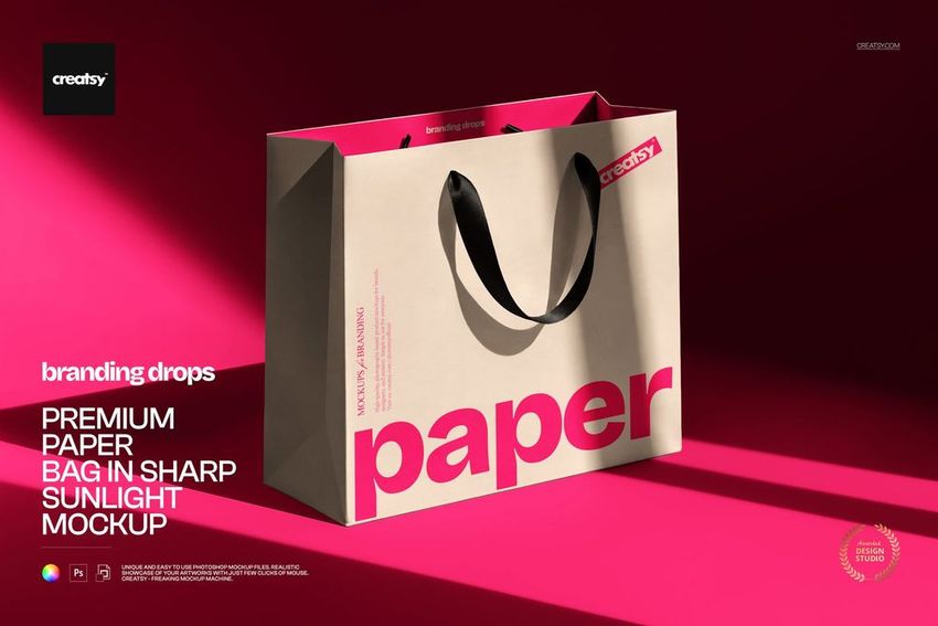 Premium Paper Bag in Sharp Sunlight Mockup