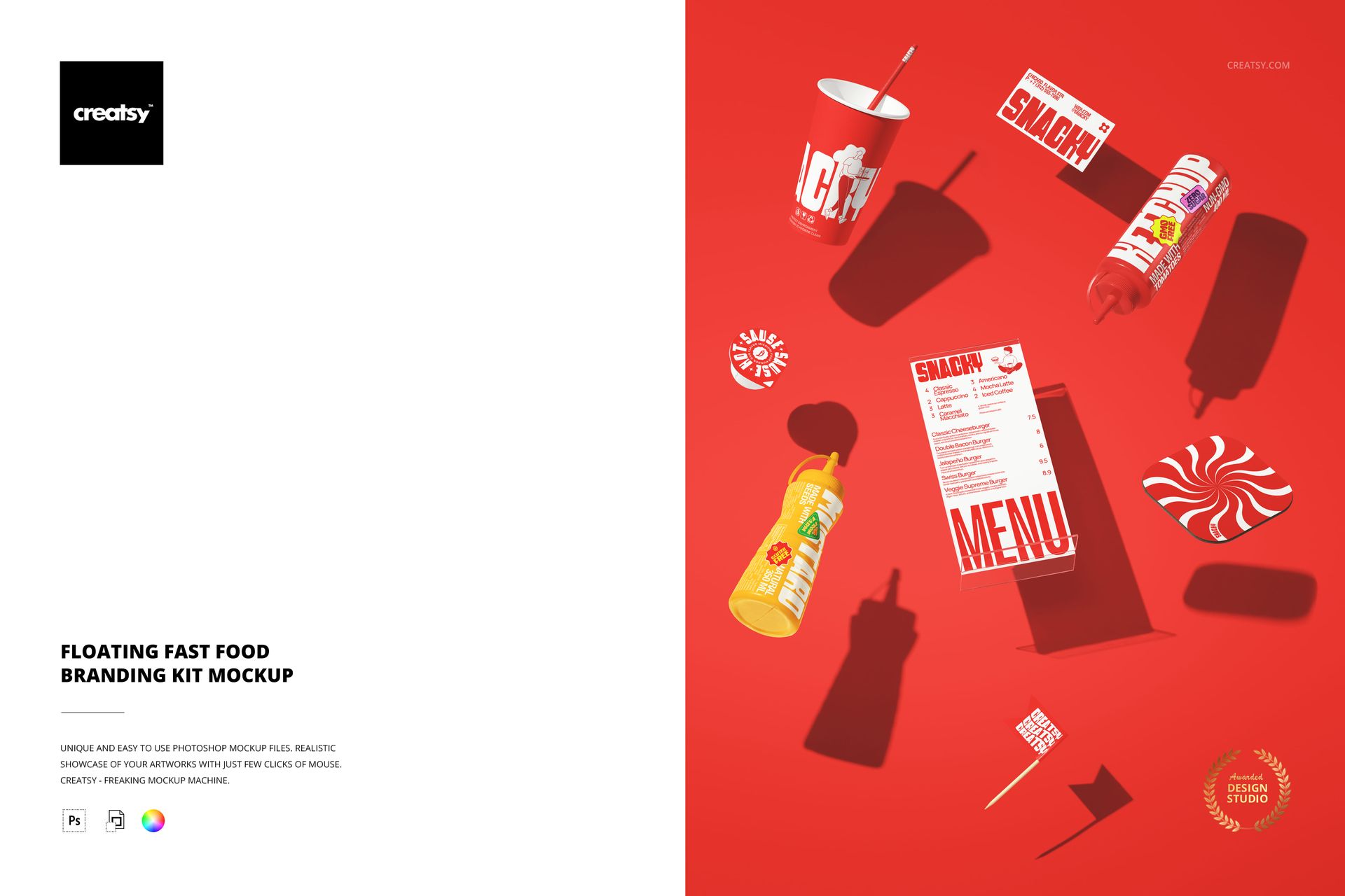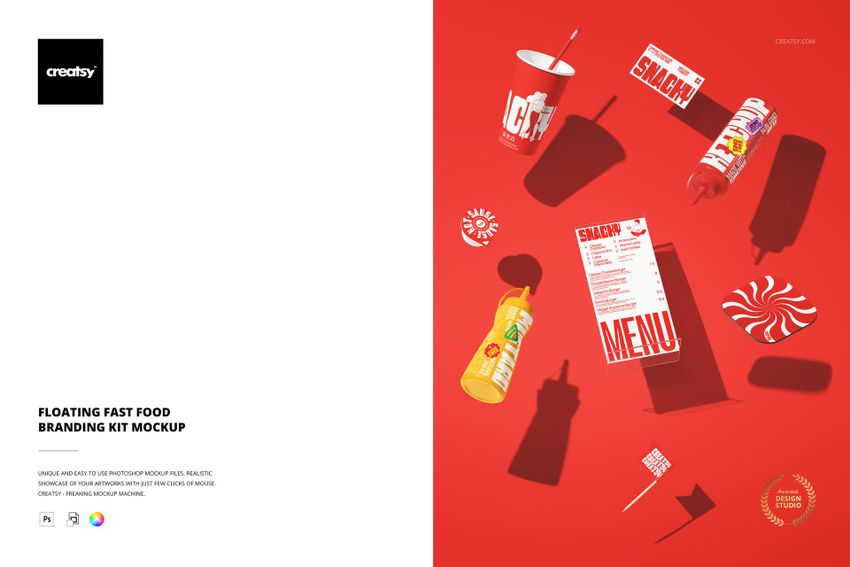 Floating Fast Food Branding Kit Mockup